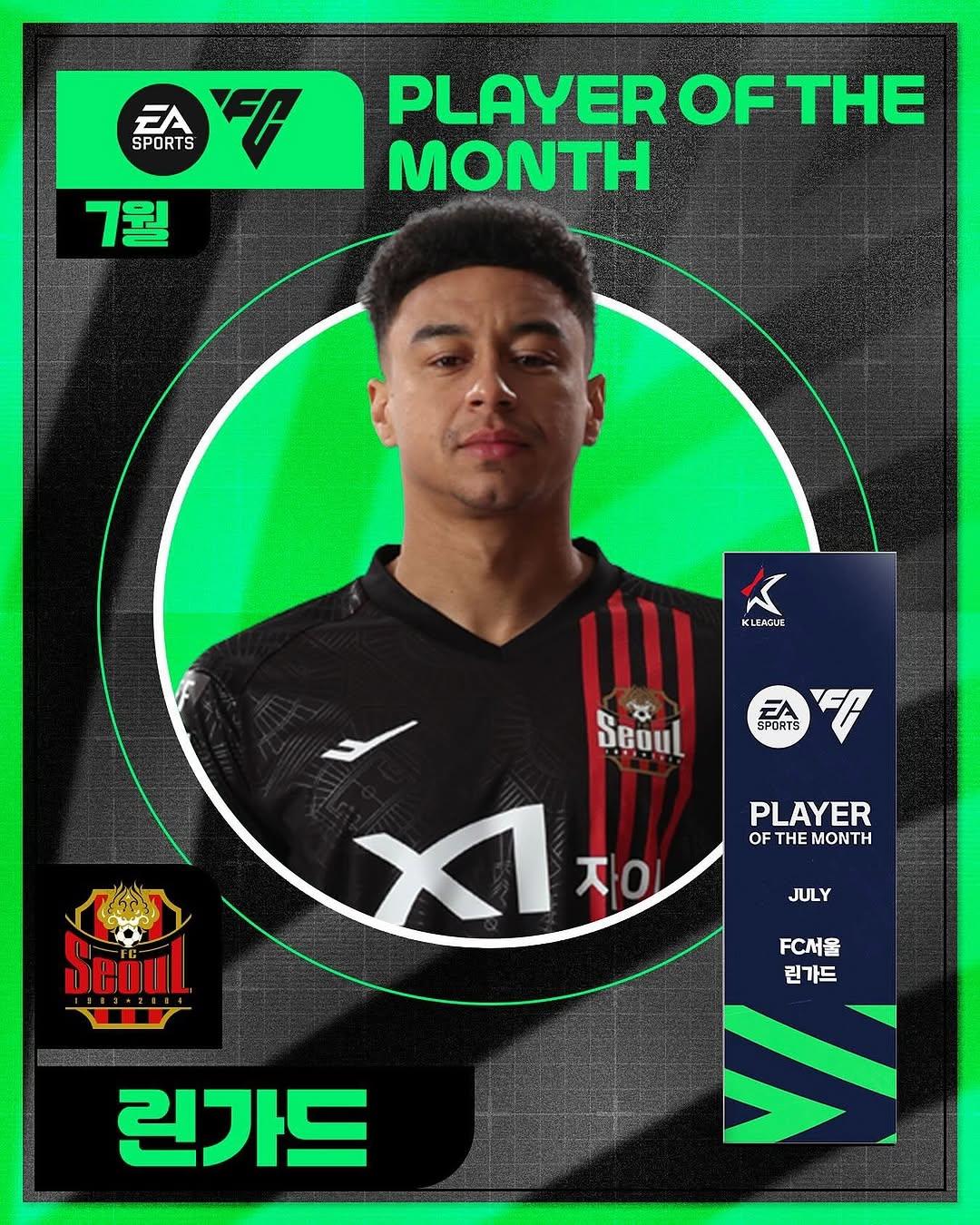 Vào ngày 20 tháng 8, K League chính thức của Hàn Quốc đưa tin tiền vệ Jesse Lingard của FC Seoul đã được bầu là cầu thủ xuất sắc nhất giải đấu vào tháng 7. Tại giải K-League Hàn Quốc diễn ra vào tháng 7, Lingard đã ra sân 3 lần và đóng góp 2 bàn thắng, cả hai đều là bàn thắng quyết định, giúp đội bóng giành được 2 chiến thắng và 1 trận thua sau 3 trận.